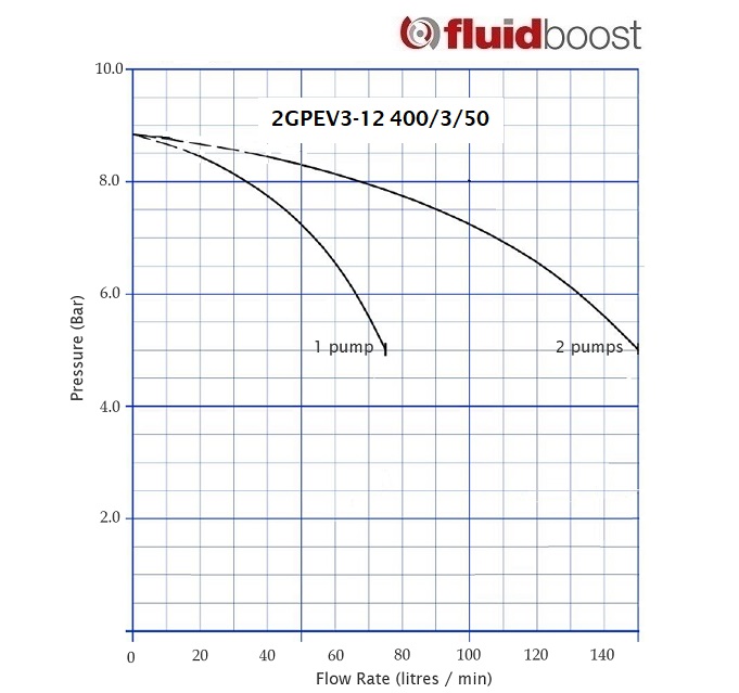 Nominal Duty: 1.0 litre / sec @ 6.0 bar. (Maximum flow 1.25 litres / sec per pump)