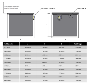 - Tank capacity sized for approx. 135 litres storage per person per day.